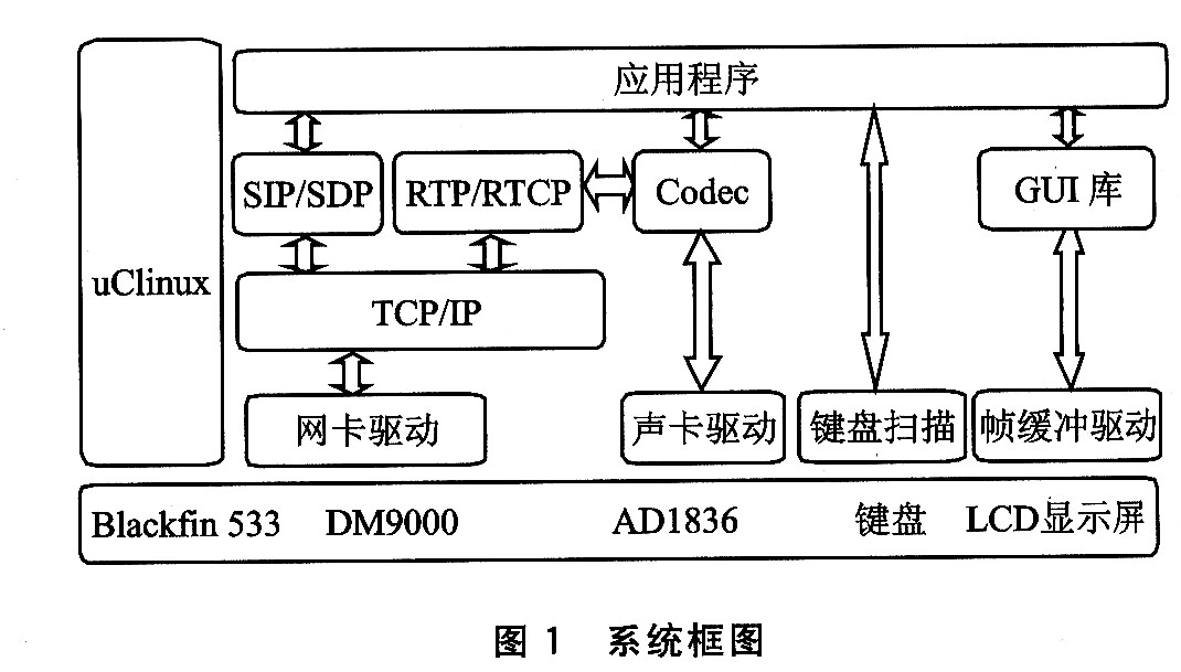 Initiation Protoc01)協(xié)議憑借相對簡單的實現(xiàn)模式和極強的擴展性受到了越來越多的關(guān)注。ADI公司推出的Blackfin處理器是一類專為滿足當今嵌入式音頻、視頻和通信應用的計算要求和功耗約束條件而設(shè)計的新型16/32位嵌入式處理器。該處理器基于ADI和Intel公司聯(lián)合開發(fā)的微信號架構(gòu)(MSA),擁有類RISC型指令集、雙16位乘法器、雙40位邏輯運算單元(ALU)、40位桶形移位器和4個視頻運算單元(videoALUs),將信號處理功能和通用型微控制器所具有的易用性組合在了一起。這種處理特征的組合使得Blackfin處理器能夠在信號處理和控制處理應用中均有較好的表現(xiàn);與此同時,該能力也簡化了硬件和軟件方面的設(shè)計。SIP類似于HTTP協(xié)議,也是一個基于文本的協(xié)議,因而易于讀取和調(diào)試。與此同時,SIP協(xié)議在制訂時就考慮到了擴充性的問題,通過增加新的消息類型、消息頭和消息體即可實現(xiàn)新服務。即使不能支持基于SIP的舊設(shè)備也不會妨礙這些新服務。另外,SIP的一個重要特點是,它不定義要建立的會話的類型,而只定義應該如何管理會話。有了這種靈活性,也就意味著SIP可以用于眾多應用和服務中。本文介紹了一種基于Blackfin處理器平臺的網(wǎng)絡電話方案?紤]未來應用的拓展需要和網(wǎng)絡電話的特點,選擇了Blackfin