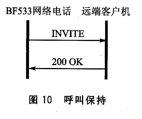 BF533網(wǎng)絡電話遠端客戶機遠端各尸機回復200 0K接受保持,如圖10所示。同理,呼叫恢復就是將c參數(shù)恢復原值,過程與呼叫保持相同。