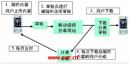 由于UGC(用戶產(chǎn)生內(nèi)容)類業(yè)務(wù)的產(chǎn)生,內(nèi)容類業(yè)務(wù)出現(xiàn)了創(chuàng)新的商業(yè)模式,根據(jù)內(nèi)容下載情況與內(nèi)容提供者之間進(jìn)行分成。和黃3公司就推出了這樣的盈利模式,我國移動視頻共享網(wǎng)站也在向這個方向探索。