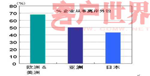 一項(xiàng)調(diào)查顯示,歐美近70%企業(yè)從事離岸外包,亞洲將近50%企業(yè)從事離岸外包,尤其以日本為典型,將近45%的企業(yè)從事離岸外包。