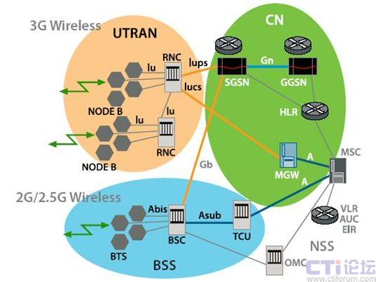 (RNC) 這一元素。在 3G UMTS 網(wǎng)絡(luò)中,RNC 可執(zhí)行無線電資源管理、移動管理和加密功能,它可通過媒體網(wǎng)關(guān)連接至電路交換核心網(wǎng)絡(luò),實現(xiàn)電路交換語音服務(wù),此外,它還可連接至數(shù)據(jù)包交換核心網(wǎng)絡(luò)中的