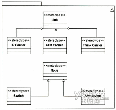 該擴(kuò)展針對Link和Node和兩個元類增加了NGN中關(guān)于承載和節(jié)點(diǎn)的定型?梢愿鶕(jù)需要對該模型作進(jìn)一步擴(kuò)展,如可以增加關(guān)于接入網(wǎng)承載的定型等。