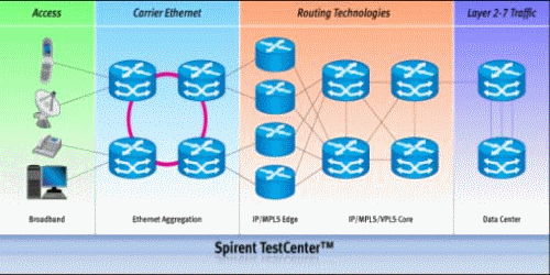 隨著語音、數(shù)據(jù)、視頻的融合,以及Everything over IP的發(fā)展,日趨復雜的業(yè)務(wù)流量及電信級別的營運要求給承載設(shè)備帶來更加嚴格的挑戰(zhàn)。豐富的功能應用、高密度/高帶寬端口的支持、高性能轉(zhuǎn)發(fā)要求、全面的寬帶接入系統(tǒng)、靈活的業(yè)務(wù)應用及流量管理、完備的安全防護、周全的穩(wěn)定運營及容錯備份系統(tǒng)、良好的可擴展性等,設(shè)備廠商交付使用的不僅僅是單一的設(shè)備,而是一攬子從承載到應用的綜合系統(tǒng)。部署實施前的測試也變得相當重要,能否有一種完整的測試解決方案,以幫助設(shè)備制造廠商完全應用目前的所有功能測試呢?
