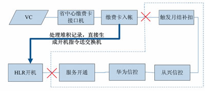 以圖4智能網(wǎng)充值開機(jī)流程為例,其經(jīng)歷的步驟繁多,特別是其中信控判斷邏輯復(fù)雜,程序處理耗時多,是引起月結(jié)用戶充值到賬但無法及時開機(jī)的關(guān)鍵環(huán)節(jié)。站在服務(wù)用戶的角度,最直接的應(yīng)急方式便是提取已繳費(fèi)入賬的號碼直接送HLR施工開機(jī),對于存在欠費(fèi)可能的用戶,其開機(jī)狀態(tài)在正常流程進(jìn)行修復(fù),但對于充值后仍欠費(fèi)的用戶,其開機(jī)狀態(tài)將在經(jīng)歷過信控后自動被修改為停機(jī)。