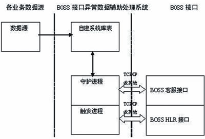 值得一提的是,作為BOSS與外圍系統(tǒng)的承接點(diǎn),接口的功能最終可歸結(jié)為對BOSS與外圍系統(tǒng)數(shù)據(jù)庫的操作。其中,主動接口的實(shí)現(xiàn)邏輯對BOSS2.0接口監(jiān)控措施的實(shí)現(xiàn)至關(guān)重要。