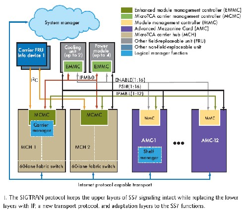 信令網(wǎng)關(guān)用于橋接下一代IP網(wǎng)絡(luò)和傳統(tǒng)的包交換電話(huà)網(wǎng)絡(luò)(PSTN),處理的主要是呼叫建立、控制和計(jì)費(fèi)等信號(hào)。網(wǎng)關(guān)設(shè)計(jì)要求融合IP協(xié)議、傳統(tǒng)的交換電路協(xié)議、操作系統(tǒng)、管理以及高可靠性的硬件系統(tǒng)設(shè)計(jì)。MicroTCA、AdvancedMC硬件和現(xiàn)成軟件可以提供構(gòu)建模塊用于開(kāi)發(fā)獨(dú)立的信令網(wǎng)關(guān)設(shè)計(jì),這樣設(shè)計(jì)出來(lái)的網(wǎng)關(guān)很容易隨著IP電話(huà)需求的增加而進(jìn)一步擴(kuò)展。