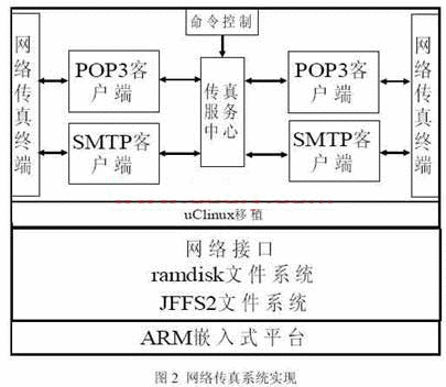 uClinux,以及 ARM處理器實現(xiàn)網(wǎng)絡傳真系統(tǒng)的設計思路和實現(xiàn)方法;第4部分對設計過程進行了簡單總結。