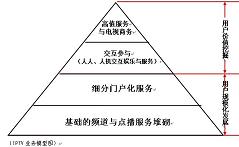 擁有4億多注冊用戶的騰訊,占有中國即時通信80%的市場份額,互聯(lián)網(wǎng)行業(yè)贏家通吃的定律顯露無疑,騰訊在海量用戶群基礎(chǔ)上開發(fā)的各種業(yè)務(wù)都在行業(yè)排名前列。當(dāng)電視服務(wù)的規(guī)模用戶群得以穩(wěn)固,基于用戶規(guī)模之上的多元化服務(wù)集成成為可能,對電視服務(wù)形成高度依賴的用戶群具備了價值挖掘的條件。人人交互、人機(jī)交互依托基礎(chǔ)的電視分眾門戶化應(yīng)用,形成了最初的用戶使用習(xí)慣;依托電視分眾門戶化集成的積累,建立用戶識別、用戶分析、收視分析、用戶數(shù)據(jù)交換的技術(shù)體系,用以支撐未來多元化娛樂與服務(wù)的開發(fā);贗PTV的交互能力,依托電視終端的易用性與舒適性,用戶價值、終端價值被充分挖掘,電視服務(wù)開始對其他媒介形式(含互聯(lián)網(wǎng))的用戶形成吸納。圍繞交互、商務(wù)需求的電子貨幣體系逐漸完善,電視進(jìn)入可有效運(yùn)營、可便捷支付的良性的產(chǎn)業(yè)循環(huán),IPTV多元化業(yè)務(wù)之門打開。