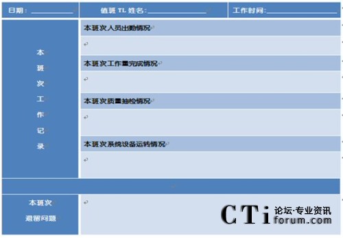 用于TL對(duì)當(dāng)班運(yùn)營(yíng)情況的記錄,以保證運(yùn)營(yíng)信息的連續(xù)性和完整性。