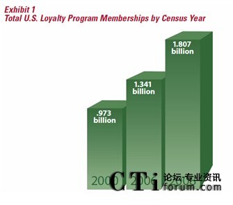 據(jù)權(quán)威的客戶忠誠度研究機(jī)構(gòu)COLLOQUY在2009出版的一份報(bào)告,2008年底,全美客戶忠誠度計(jì)劃的參與人次達(dá)到18.07億,平均每個(gè)美國(guó)家庭參與了14.1個(gè)忠誠度計(jì)劃,相較2006年底的13.41億參與人次,共增了了24.73%(連續(xù)兩年環(huán)比增長(zhǎng)12%/年),而同期美國(guó)的GDP增長(zhǎng)僅為2.2%。從這一點(diǎn)上看,美國(guó)企業(yè)對(duì)忠誠度營(yíng)銷的熱情不減,盡管忠誠度營(yíng)銷在美國(guó)已相當(dāng)成熟,但美國(guó)企業(yè)仍然把它當(dāng)作是營(yíng)銷的重要工具。