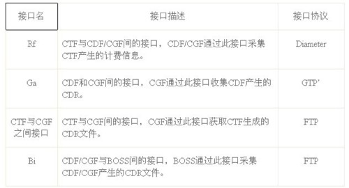 表1:IMS離線計(jì)費(fèi)相關(guān)接口說明