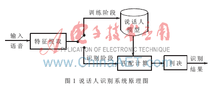 說話人識別又被稱為話者識別,是指通過對說話人語音信號的分析處理,自動確認(rèn)說話人是否在所記錄的話者集合中,以及進一步確認(rèn)說話人的身份。說話人識別的基本原理如圖1所示。