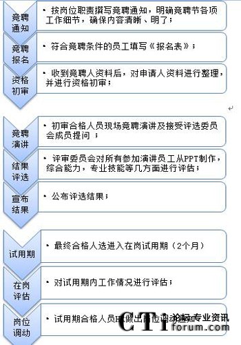 如何進(jìn)行內(nèi)部選拔 為營造公開、公平、公正的內(nèi)部人才選拔環(huán)境,使符合條件的員工均有參與的機(jī)會(huì)和權(quán)利,內(nèi)部選拔人才一般采用競(jìng)聘模式。下圖為參考流程: