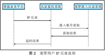對(duì)于寬帶用戶來(lái)說(shuō),認(rèn)證鑒權(quán)系統(tǒng)需要根據(jù)用戶訪問(wèn)的IP地址對(duì)用戶身份進(jìn)行反查;或?qū)τ脩粼L問(wèn)業(yè)務(wù)時(shí)輸入的用戶賬號(hào)信息進(jìn)行驗(yàn)證。其中反查與驗(yàn)證工作均需借助于寬帶接入認(rèn)證系統(tǒng)(AAA)實(shí)現(xiàn)。