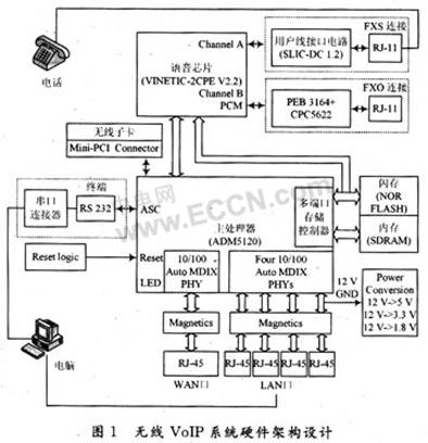 VoIP(Voice over IP)由于其在IP網(wǎng)絡中實現(xiàn)語音通信,促進了網(wǎng)絡資源的利用,降低了語音業(yè)務成本,在全球范圍內(nèi)得到了迅速的發(fā)展。802.11無線局域網(wǎng)(WLAN)將用戶從有線的網(wǎng)絡連接中解放出來。在企業(yè)中部署WLAN網(wǎng)絡之后建立VoIP的應用,并不需要對現(xiàn)有的網(wǎng)絡進行改造就能滿足在企業(yè)內(nèi)部進行語音通信的需求,并且滿足下一代移動通信應用在單一網(wǎng)絡內(nèi)進行數(shù)據(jù)、語音、多媒體的傳輸?shù)陌l(fā)展方向。本文將VoIP和WLAN(Wireless LAN)結合到一起,在MIPS(Microprocessor without Interlocked PipelineStages)架構的處理器ADM5120上實現(xiàn)了在無線局域網(wǎng)內(nèi)進行IP通話的功能。系統(tǒng)以終端的形式進行通信,可移動性強。