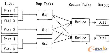 作為云計(jì)算的核心,簡(jiǎn)單來講Map Reduce就是“任務(wù)的分解與結(jié)果的匯總”,圖3是其工作模式示意圖。