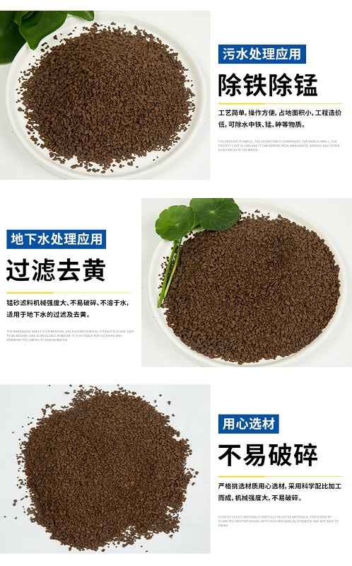 用于地下水除鐵和除錳的天然錳砂濾料,其錳的形態(tài)應(yīng)以氧化錳為主。含錳量(以MnO2計(jì),下同)不應(yīng)小于35%的天然錳砂濾料,既可用于地下水除鐵,又可用于地下水除錳;含錳量為20%~30%的天然錳砂濾料,只宜用于地下水除鐵;含錳量小于20%的錳礦砂則不宜采用。宜優(yōu)先采用經(jīng)過科學(xué)試驗(yàn)或生產(chǎn)使用證明能獲得良好除鐵和除錳效果的天然錳砂品種作濾料。