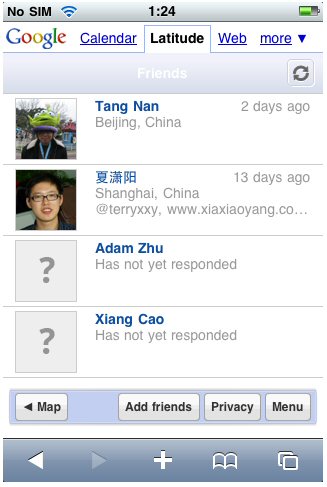 打開后會(huì)默認(rèn)顯示所有Google Profile里加入Latitude的好友: