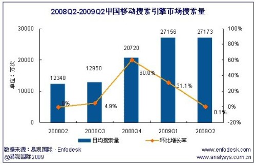 2009年第2季度中國(guó)移動(dòng)搜索引擎市場(chǎng)搜索量達(dá)2.72億次