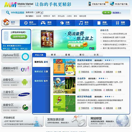 短暫開通的中國移動(dòng)Mobile Market網(wǎng)站顯示,中國移動(dòng)手機(jī)應(yīng)用程序商店的正式名稱為Mobile Market移動(dòng)應(yīng)用商場,中國移動(dòng)自己簡稱其為MM。