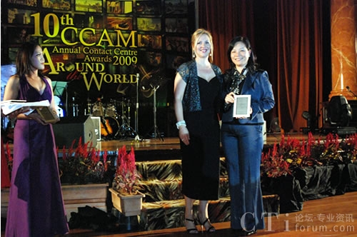 亞太客服與呼叫中心聯(lián)盟(APCCAL)全體成員單位悉數(shù)派人到場(chǎng)參加盛會(huì)。中國(guó)電子商會(huì)呼叫中心及客戶關(guān)系管理專(zhuān)業(yè)委員會(huì)秘書(shū)長(zhǎng)米輝波、副事長(zhǎng)秦克旋和王建軍、中信銀行信用卡客戶服務(wù)中心副總經(jīng)理金小云、飛翱(上海)商務(wù)咨詢有限公司市場(chǎng)與客戶服務(wù)部總監(jiān)王淑信、以及來(lái)自山東萬(wàn)聲、湖北萬(wàn)聲、天津聯(lián)通等國(guó)內(nèi)呼叫中心機(jī)構(gòu)的多位嘉賓出席了會(huì)議。其中中信銀行信用卡客戶服務(wù)中心、飛翱(上海)商務(wù)咨詢有限公司的代表代表中國(guó)從亞太客服與呼叫中心聯(lián)盟(APCCAL)高級(jí)官員的手中接過(guò)了象征著2009亞太呼叫中心行業(yè)最高榮譽(yù)的2009亞太最佳呼叫中心的獎(jiǎng)牌。