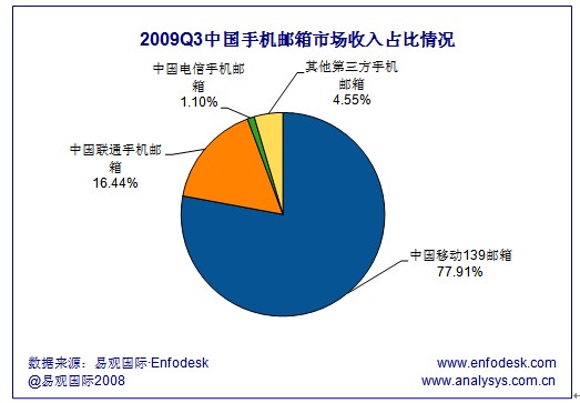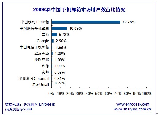 易觀:中移動139郵箱領(lǐng)跑2009Q3手機郵箱市場