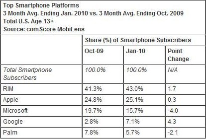 comScore報(bào)告顯示智能機(jī)RIM市占額達(dá)43%