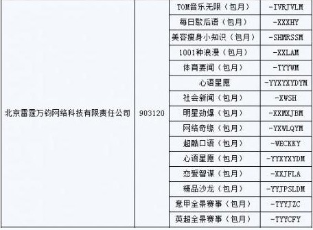 圖:北京雷霆萬均網(wǎng)絡(luò)科技有限責(zé)任公司被強(qiáng)制下線業(yè)務(wù)列表
