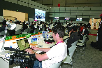 世博的主新聞中心一開門便受到媒體的“熱捧”。中國電信的后臺信息系統(tǒng)顯示,世博主新聞中心的數(shù)據(jù)量一直居高不下,因?yàn)橛浾哒χ米烂嫔系?00M有線寬帶高速上網(wǎng)、收發(fā)稿件、傳送采訪的視頻。在世博主新聞中心一樓記者工作大廳,想在300個坐席里找個空位可不是容易的事情。