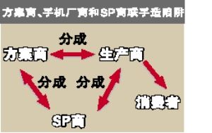 中國(guó)移動(dòng)2007年1月出臺(tái)的《移動(dòng)夢(mèng)網(wǎng)SP合作管理辦法》規(guī)定,禁止SP和終端廠家直接進(jìn)行終端內(nèi)置業(yè)務(wù)的合作。但是,大部分國(guó)產(chǎn)手機(jī)生產(chǎn)環(huán)節(jié)當(dāng)中,都有一個(gè)重要的角色,那就是手機(jī)方案商。方案商主要負(fù)責(zé)提供整套手機(jī)設(shè)計(jì)方案,包括研發(fā)手機(jī)主板、設(shè)計(jì)操作系統(tǒng),他們把帶有操作系統(tǒng)的主板賣給手機(jī)生產(chǎn)商,生產(chǎn)商再采購(gòu)?fù)鈿、液晶屏等部件組裝成成品手機(jī)。