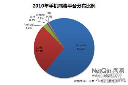 圖:2010年手機(jī)病毒平臺(tái)分布比例