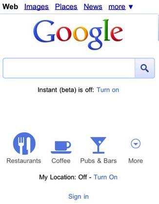 谷歌更新了移動搜索用戶界面。用戶移動設備屏幕的下方增添了諸如餐館、咖啡店、酒吧等圖標,并增添了一個“更多”的圖標。如果用戶點擊這些圖標,可以查詢用戶所在地的各種商店的信息。而且這些商店的營業(yè)場所還將會在地圖上顯示出來。
