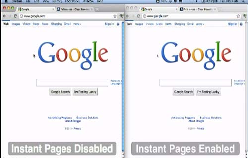 Instant Pages即時搜索網(wǎng)頁這一新功能,將會加快網(wǎng)頁打開的速度。此項功能目前只限于谷歌Chrome Web瀏覽器。用戶鍵入搜索內(nèi)容的同時,相關網(wǎng)頁便開始自行打開,點擊這些網(wǎng)頁鏈接即可省下等待時間。這項功能昨日開始公測。