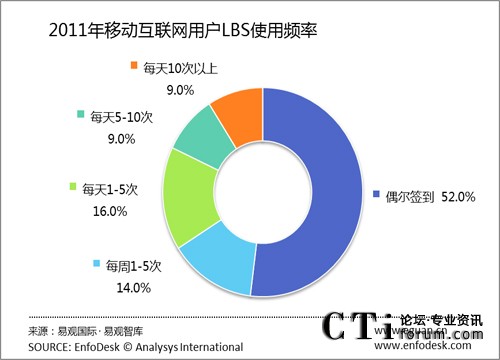 2011年移動(dòng)互聯(lián)網(wǎng)用戶使用LBS活躍度不足