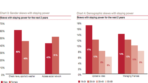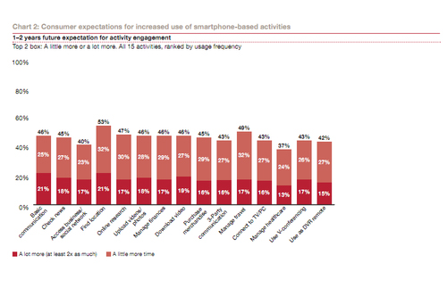 而在未來兩年,這些不同的功能使用只會越來越多,像基本的通信功能、LBS等,21%的用戶預(yù)計(jì)使用的程度將是今天的2倍以上