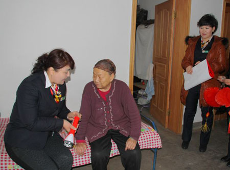 “阿姨,春節(jié)快到了,我們來看看您,前兩天已經(jīng)幫您把電充上了,這次給您帶了個手電,用著它以后到地下室可以照個亮。”隊長阿依古麗向丁阿姨說明來意,還跟丁阿姨試了試,手電是充電式的,不用換電池,丁阿姨挺高興的。臨走時,阿依古麗還在她家門上貼了個大紅的“!弊,祝福老人家新年快樂。