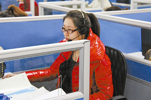 趙曉薇(化名)是拉手網(wǎng)北京客服部的一名工作人員,每天早上8:30,她會(huì)準(zhǔn)時(shí)戴上耳麥,開(kāi)始一天忙碌的工作。“特忙,電話多的時(shí)候,一天得有300個(gè)來(lái)電!睍赞笔且粋(gè)語(yǔ)氣平和,聲音甜美,笑容溫和的女孩子。正說(shuō)著,她就趕緊接通了正在鈴鈴作響的電話,開(kāi)始熱情、耐心地為用戶釋疑解困。