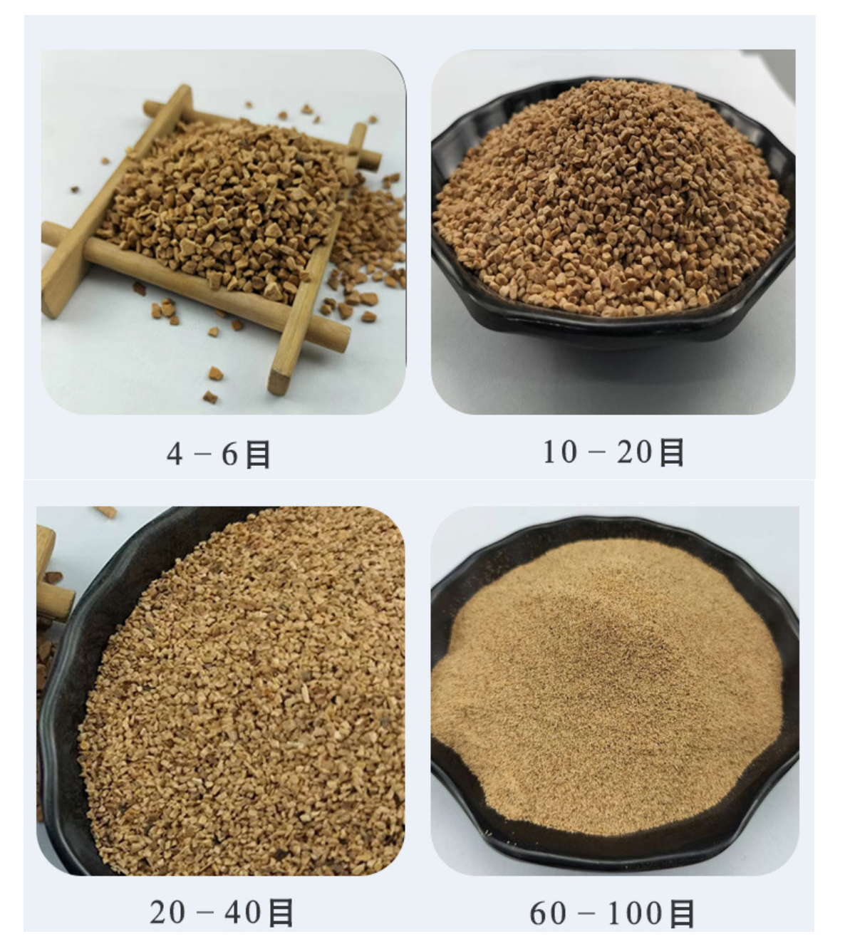核桃果殼濾料具有硬度高,耐磨損 ,油去除率效率高。