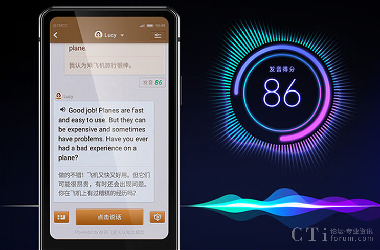 AI教練可以隨時(shí)隨地和用戶一對(duì)一地聊天,并會(huì)將聊天內(nèi)容用中英文對(duì)照的方式顯示在屏幕上,同時(shí)還會(huì)對(duì)用戶的口語(yǔ)發(fā)音進(jìn)行智能打分。