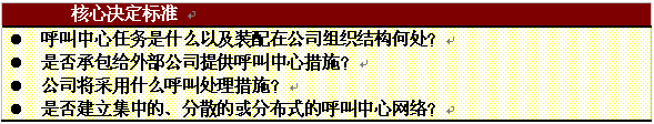 。。當(dāng)一個(gè)公司考慮將呼叫中心納入其整體服務(wù)策略的時(shí)候,在具體步驟開始以前必須作一些基本的決定。重要的是評(píng)估該公司當(dāng)前的服務(wù)策略并考慮可能的選擇范圍。本章簡要總結(jié)了建立呼叫中心可能發(fā)生的一些典型的運(yùn)營管理問題。