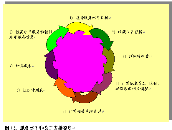 要準(zhǔn)確預(yù)測(cè)員工需求量,至少需要四個(gè)月的相關(guān)數(shù)據(jù)。這些數(shù)據(jù)將收錄在自動(dòng)工作表制訂工具中。圖13舉例說(shuō)明了呼叫中心可采取的此類步驟。