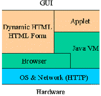 Dynamic HTML可以很好地進(jìn)行公開信息的發(fā)布,通過HTML Form機制可以從瀏覽器中得到用戶檢索等簡單操作的輸入信息。對于無須身份認(rèn)證、訪問控制的內(nèi)容,在Web Server上可以使用通常的CGI技術(shù)獲取用戶的請求、查詢條件,通過Web Connector還可以使用應(yīng)用服務(wù)其提供的后臺服務(wù),結(jié)果使用HTML方式描述,并可直接回送到客戶端的瀏覽器。如果進(jìn)一步使用Applet技術(shù),還可以在客戶端實現(xiàn)更為友好的交互式顯示模式。無論是使用DHTML技術(shù)還是HTML Form加上Server方擴展(如CGI, ISAPI, NSAPI, fastCGI和servlet等)。它們適合處理的業(yè)務(wù)都是每次請求/應(yīng)答基本獨立,相互無關(guān)聯(lián)的情況。對于一些更為復(fù)雜的應(yīng)用,要求前后操作具有相關(guān)性,客戶與服務(wù)器端各自保持狀態(tài)的變化且狀態(tài)是相關(guān)的。在這種情形之下,更好的解決方案是將客戶端的所有操作保持在一個Applet中完成,由Applet直接與Web Server交互數(shù)據(jù)來完成請求/應(yīng)答數(shù)據(jù)的交互。