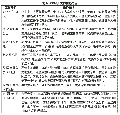 表2:選擇性CRM開發(fā)角色