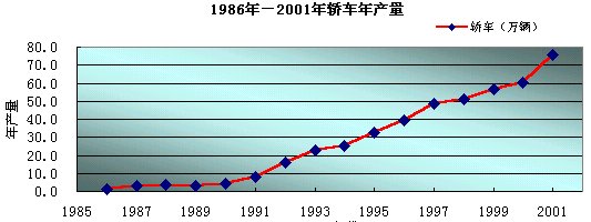 1997年上汽集團(tuán)與美國(guó)通用的合資企業(yè)上海通用公司成立,產(chǎn)品定位在"別克"中高檔汽車上;1998年本田公司替代標(biāo)致公司成為廣州的合作伙伴,產(chǎn)品定位在"雅閣"中高檔汽車。產(chǎn)品品種的豐富以及生產(chǎn)能力的擴(kuò)大,為今后中高檔汽車市場(chǎng)需求的快速增長(zhǎng)奠定了穩(wěn)固的基礎(chǔ)。