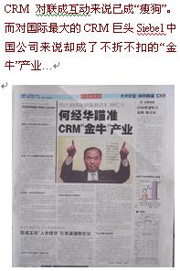 而此前Siebel在中國市場一直采取"大鯨不游淺水"策略,保持低調(diào),冷眼旁觀,并未投入大量人力財力在中國市場,此次巨資籠絡(luò)何經(jīng)華,是否Siebel認(rèn)為中國CRM這個"淺池子"開始加深了?