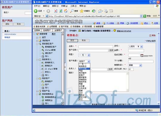 上圖是杰易CRM客戶關(guān)系管理系統(tǒng)的營銷活動管理模塊。該模塊將營銷活動和目標(biāo)管理分了七項管理,操作很是簡單但功能還非常到位。下圖是銷售機會模塊,筆者認(rèn)為此模塊設(shè)計者的思路特別周到,用戶可以隨時對自己銷售機會的狀況有一個清晰的掌控,利于銷售進(jìn)程的安排。