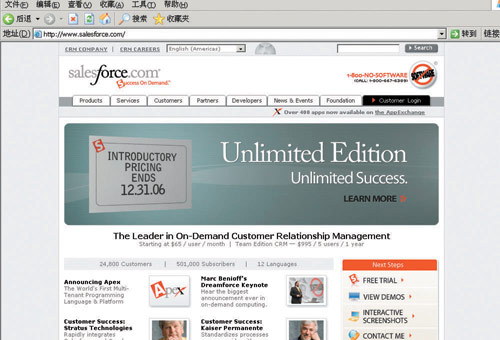 | 三大領(lǐng)域領(lǐng)先者 在線租用CRM時(shí)代已到 2006-11-08 |