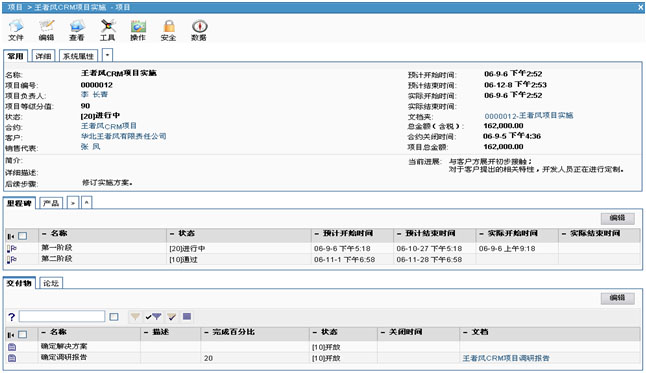 VamCRM提供專業(yè)的項(xiàng)目管理模塊,支持項(xiàng)目范圍管理、時(shí)間管理、資源管理、質(zhì)量管理、成本管理。支持以銷售合約為驅(qū)動(dòng)、過程清晰、全程受控的項(xiàng)目管理方式為客戶交付產(chǎn)品和服務(wù)。VamCRM融入成熟的項(xiàng)目管理方法和成功的實(shí)踐經(jīng)驗(yàn),從整體上對項(xiàng)目進(jìn)行規(guī)劃、組織、執(zhí)行、控制,使企業(yè)可以更加優(yōu)質(zhì)地為客戶提供長期的服務(wù)。項(xiàng)目創(chuàng)建后,VamCRM系統(tǒng)會自動(dòng)生成一個(gè)與當(dāng)前項(xiàng)目相匹配的文件夾,為項(xiàng)目執(zhí)行過程中產(chǎn)生的交付物或項(xiàng)目的有關(guān)文檔提供統(tǒng)一的存檔位置;項(xiàng)目全程融合項(xiàng)目管理的方法,分里程碑管理項(xiàng)目活動(dòng)和交付物,實(shí)時(shí)統(tǒng)計(jì)項(xiàng)目的關(guān)鍵數(shù)據(jù),并且里程碑及所屬活動(dòng)和交付物等都可分狀態(tài)量化標(biāo)識,對項(xiàng)目進(jìn)展做到實(shí)時(shí)監(jiān)控,避免了在項(xiàng)目實(shí)施中的“救火”行動(dòng)和盲目發(fā)展。也可自動(dòng)關(guān)聯(lián)記錄并統(tǒng)計(jì)所有項(xiàng)目進(jìn)展過程中發(fā)生的預(yù)算與費(fèi)用,實(shí)現(xiàn)項(xiàng)目費(fèi)用清晰可控。伴隨著項(xiàng)目的進(jìn)程,可以記錄所有在項(xiàng)目執(zhí)行過程中相關(guān)的聯(lián)系人、文檔、備忘錄等數(shù)據(jù),形成完整的項(xiàng)目內(nèi)容集合。項(xiàng)目中還包括基于項(xiàng)目的論壇,供項(xiàng)目組成員就項(xiàng)目的相關(guān)問題進(jìn)行在線交流,同時(shí),項(xiàng)目管理全程與企業(yè)高效協(xié)同的業(yè)務(wù)流程無縫集成,能夠使企業(yè)的相關(guān)部門以項(xiàng)目為導(dǎo)向,集中所有資源高效協(xié)同服務(wù),大大降低項(xiàng)目執(zhí)行風(fēng)險(xiǎn)。