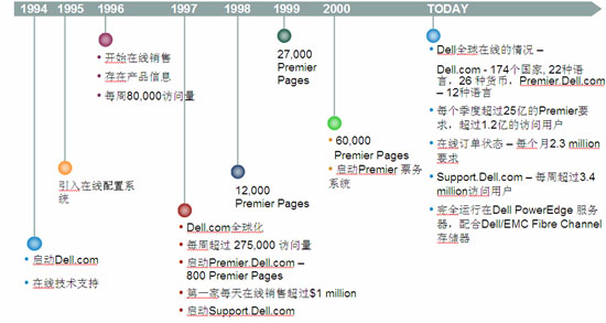 Dell從2004年開始,在中國大陸推出改服務(wù),開始的服務(wù)對象都是一些跨國公司在國內(nèi)的分支機(jī)構(gòu),到現(xiàn)在為止,已經(jīng)有1000個(gè)用戶,通過Premier下單的金額,也從開始的每月不足10萬美元,到現(xiàn)在的每月超過400萬美元。