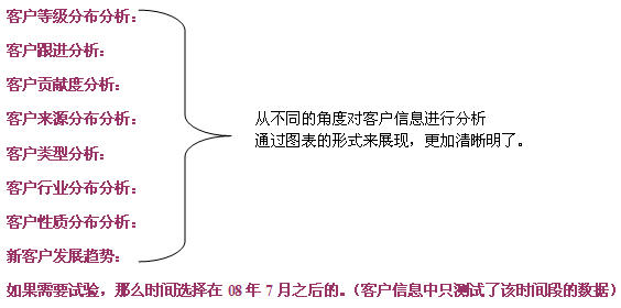 - 客戶分析:根據客戶管理的進程,多方位多角度的分析客戶的構成、發(fā)展、進程、貢獻等,幫助企業(yè)快速響應客戶的需求,有價值的關懷客戶,使企業(yè)客戶關系管理建立起一套科學的體系。